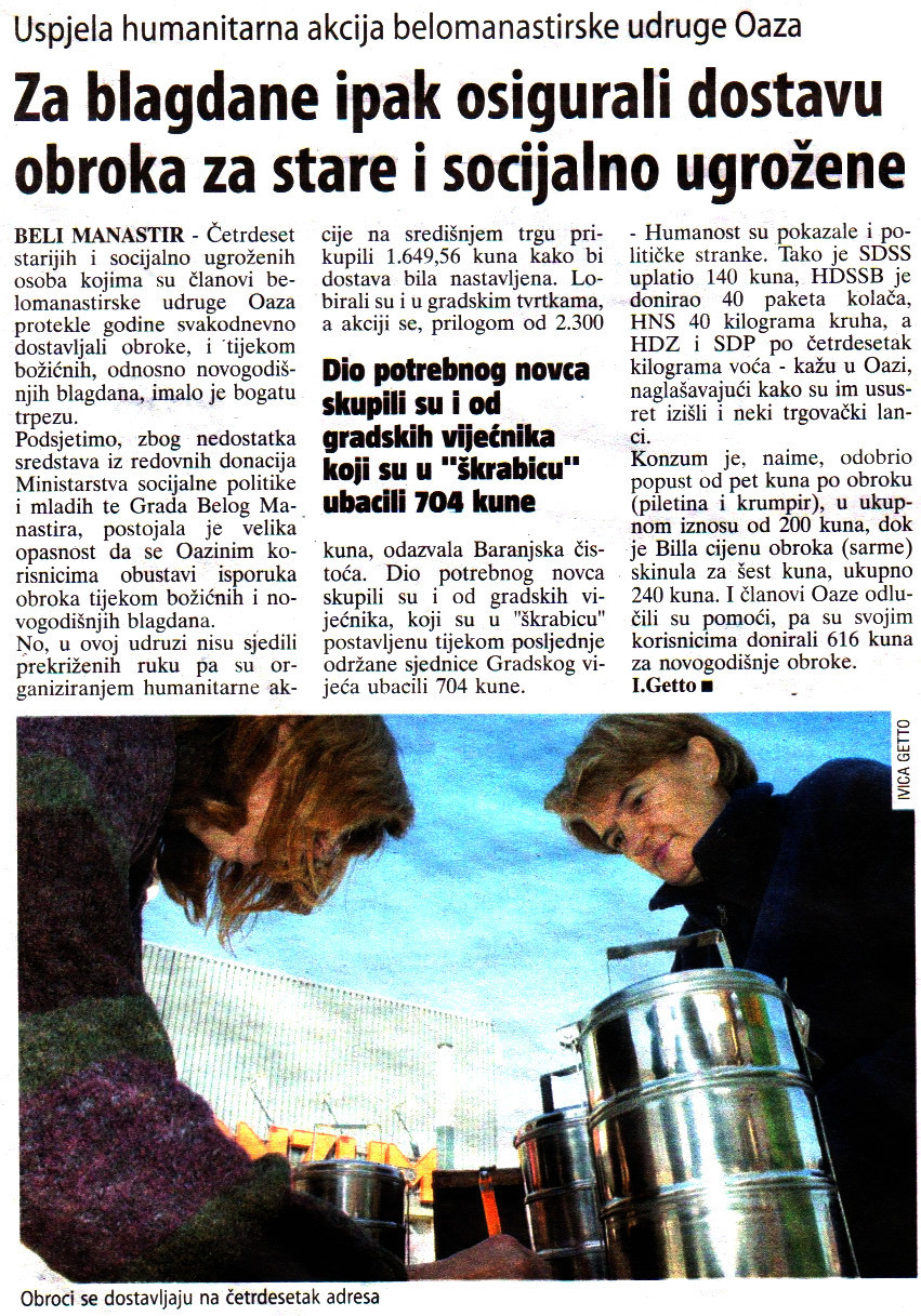 Članak o "Oazinim" toplim obrocima u "Glasu Slavonije" (II)