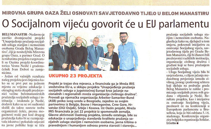 Članak u "Glasu Slavonije" o "Oazinom" projektu